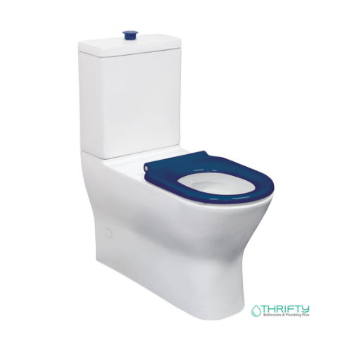 Fienza Delta Care Back-to-Wall Toilet Suite Gloss White with Blue Seat S-Trap 90-280