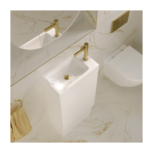 Reversible, gloss white poly-marble basin-top (no overflow)