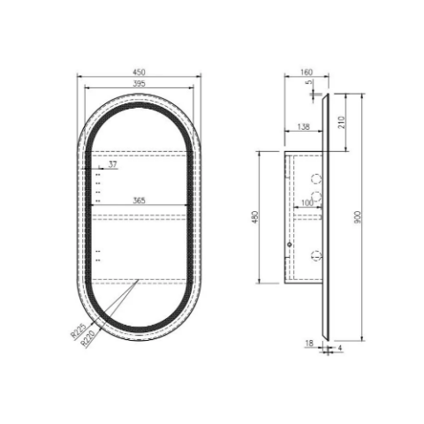 Transform your bathroom experience with the Athena LED Oval PVC Shaving Cabinet, a perfect blend of modern aesthetics and practical functionality. This 450 x 900mm mirror cabinet with a single door is designed to seamlessly integrate into any contemporary bathroom, adding both luxury and convenience to your daily routine.